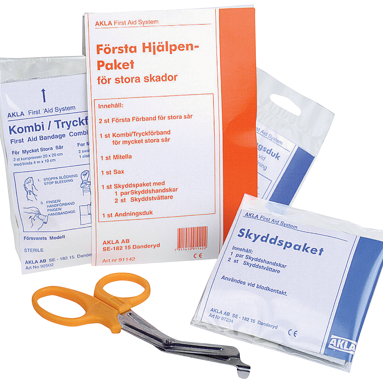 Komplett Førstehjelpspakke for store skader og for høy beredskap.