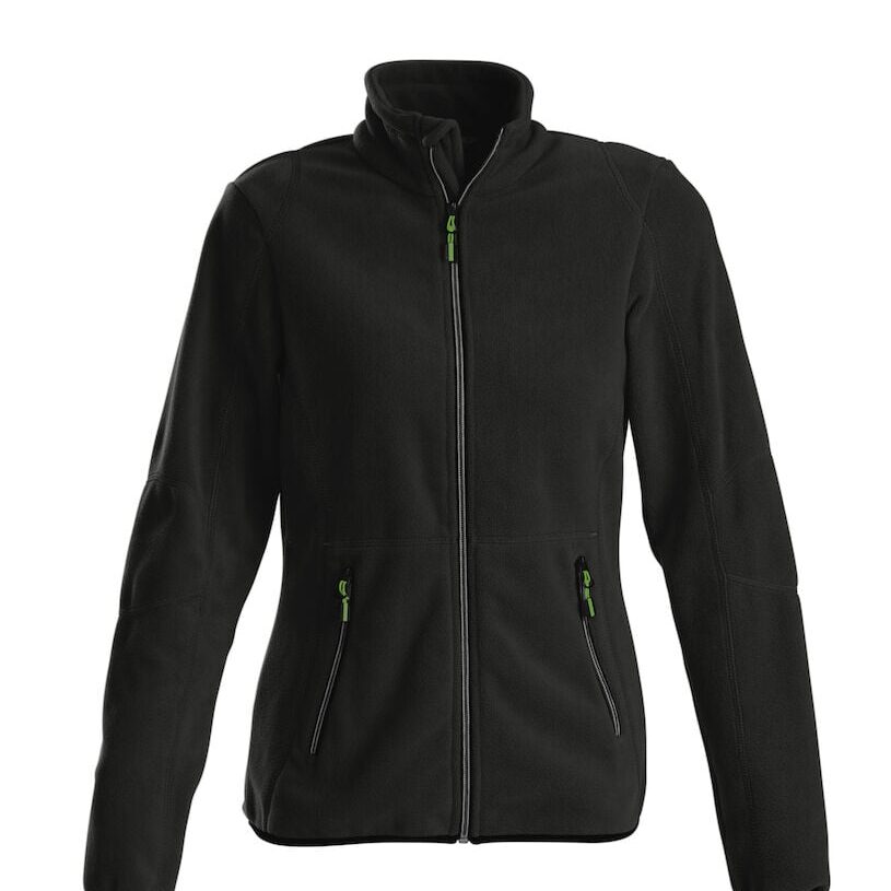 Fleecejakke med tofarget glidelås i front og i lommer. Dekorert med flatlockksømmer. 280 g/m2 mikrofleece.