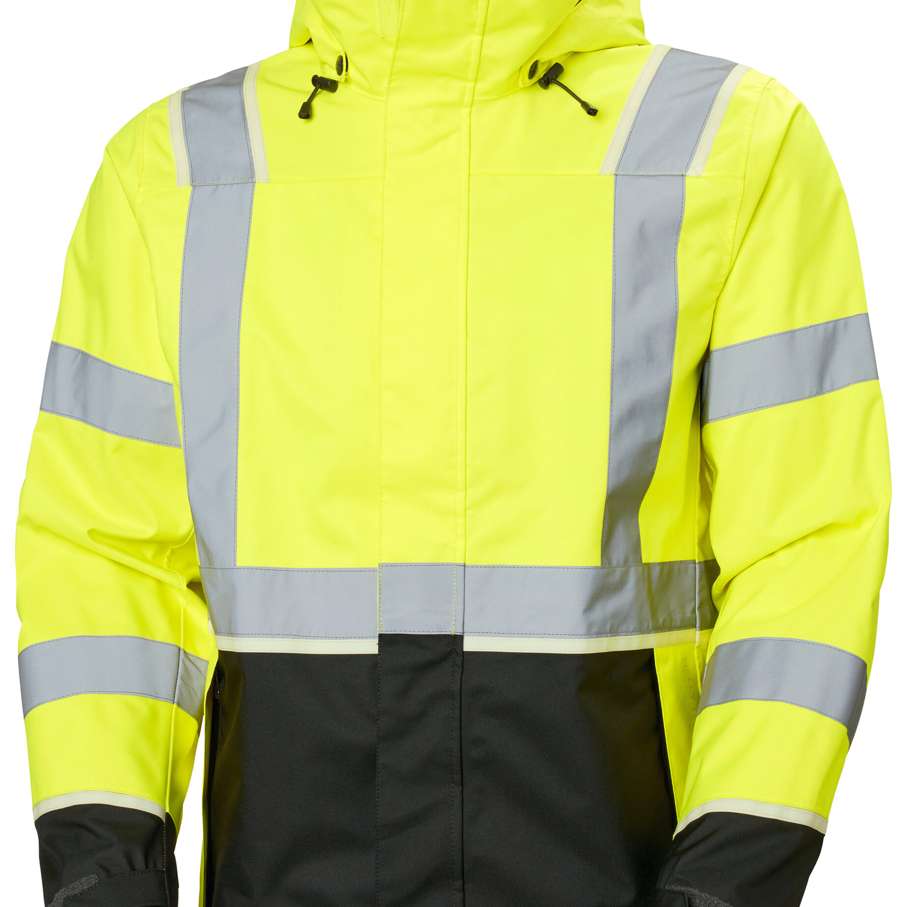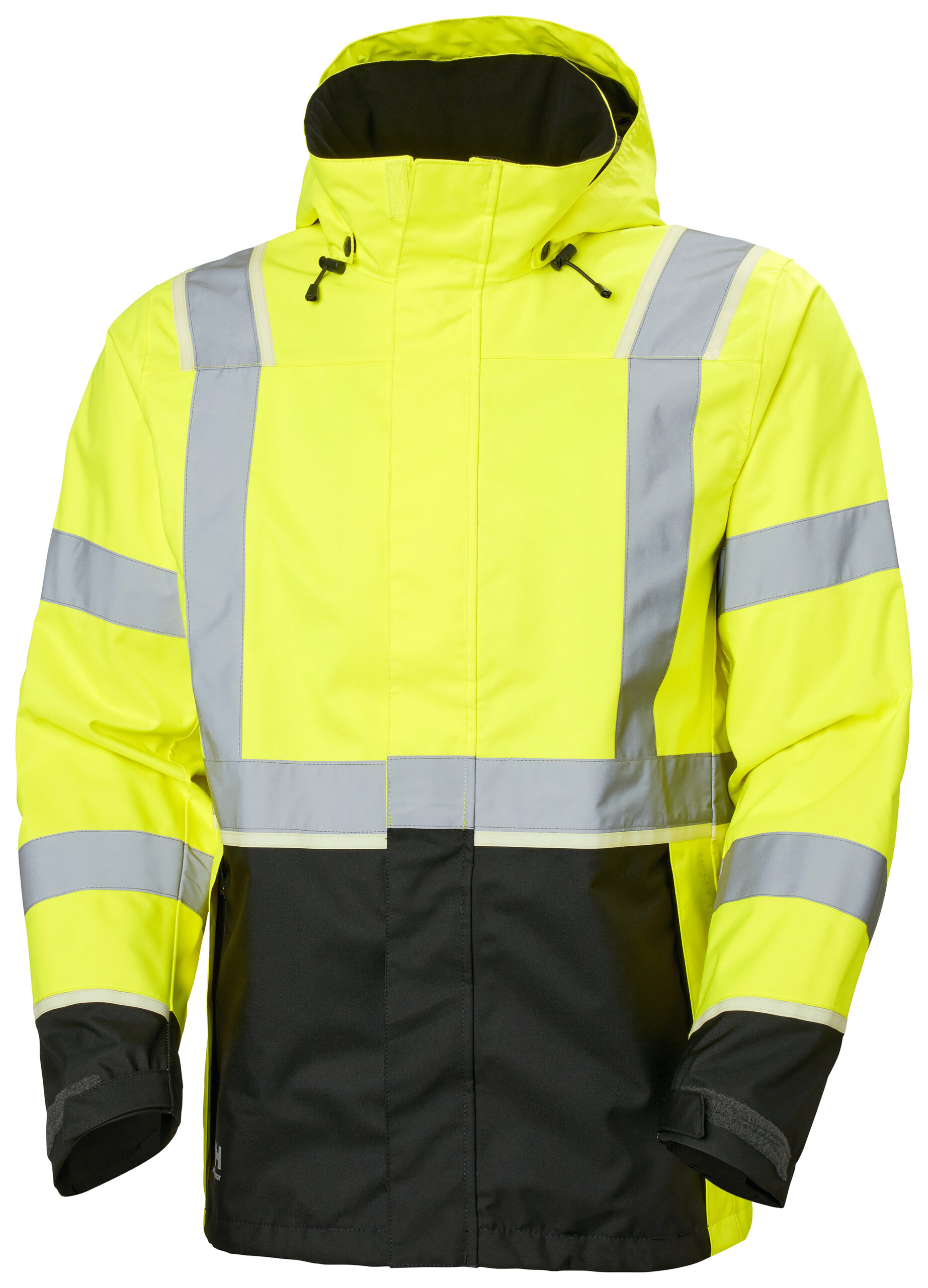 Funksjonell og slitesterk, og kombinerer moderne teknologi med tidløs kvalitet. Jakken er konstruert i lett materiale i sterke farger og med brede refleksstriper, som sørger for god synlighet. Du kan tilpasse passformen med den justerbare kanten, mansjettene og hetten. Modellen har lengre rygg enn det som er standard for skalljakker til arbeidsbruk, slik at du holder vær og vind ute uansett hvordan du beveger deg. Den avtagbare hetten kan brukes med vernehjelm og tilpasses loddrett og vannrett.